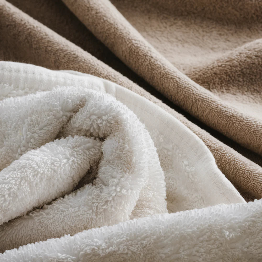 To keep your towels and bath robe luxuriously soft and absorbent, wash them in cold or warm water (max 40°C) with a mild, color-safe detergent. Avoid fabric softeners as they can reduce absorbency. Tumble dry on low heat and remove promptly to maintain fluffiness.